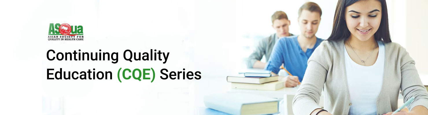 Continuing Quality Education Series is an initiative by the Quality Professionals division of CAHO and is conducted in collaboration with ASQua. It is a four hour monthly conclave consisting of live virtual sessions on a particular theme aimed at educating healthcare workers to adopt and implement best practices with the goal of improving patient safety and quality of care delivery. It brings together national and international experts nominated by ISQua & ASQua on a common platform sharing their experiences.